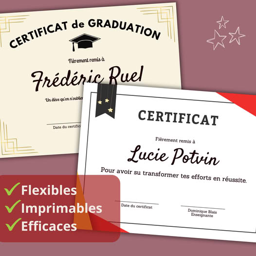 C'est la semaine de la persévérance scolaire ✨ Offrez des certificats personnalisés à vos élèves!
